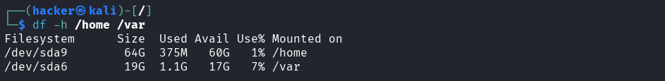 df -h /home /var