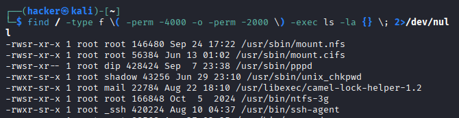 | Permission Analysis | find / -perm -4000 2>/dev/null |