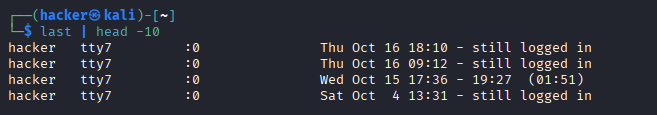 | Monitoring | last -n 10 |