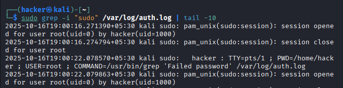 | Monitoring | sudo grep sudo /var/log/auth.log |