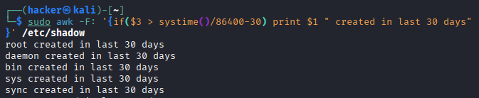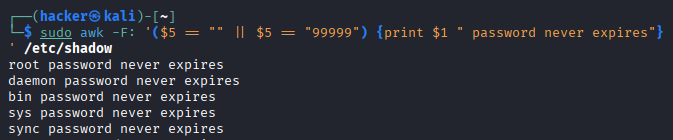 | User Analysis | awk -F: '$3==0{print}' /etc/passwd |