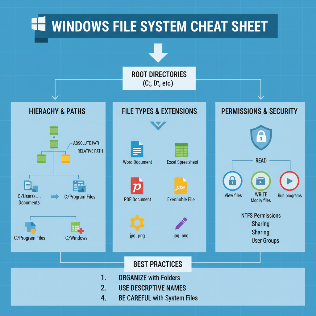 Windows file structure is the organizational system that manages how files and folders are stored on your computer. Understanding this structure is essential for efficient file management, troubleshooting, and securing your data. This tutorial explains the Windows file system hierarchy, including NTFS, FAT32, and ReFS, along with practical guidance on file permissions, directory navigation, and organization strategies. Whether you're a beginner learning file management or an IT professional optimizing system performance, this guide provides step-by-step instructions for mastering Windows file structure.